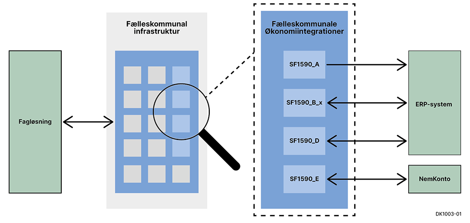 Med de Fælleskommunale Økonomiintegrationer råder kommunerne over en række integrationer på den fælleskommunale infrastruktur, som gør det muligt at formidle oplysninger om økonomi mellem et fagsystem og kommunens ERP-system. Oplysninger om økonomi kan fx være bogføringsgrundlag, information vedrørende et økonomisk mellemværende mellem borger og kommune, udbetalinger eller fakturaoplysninger.